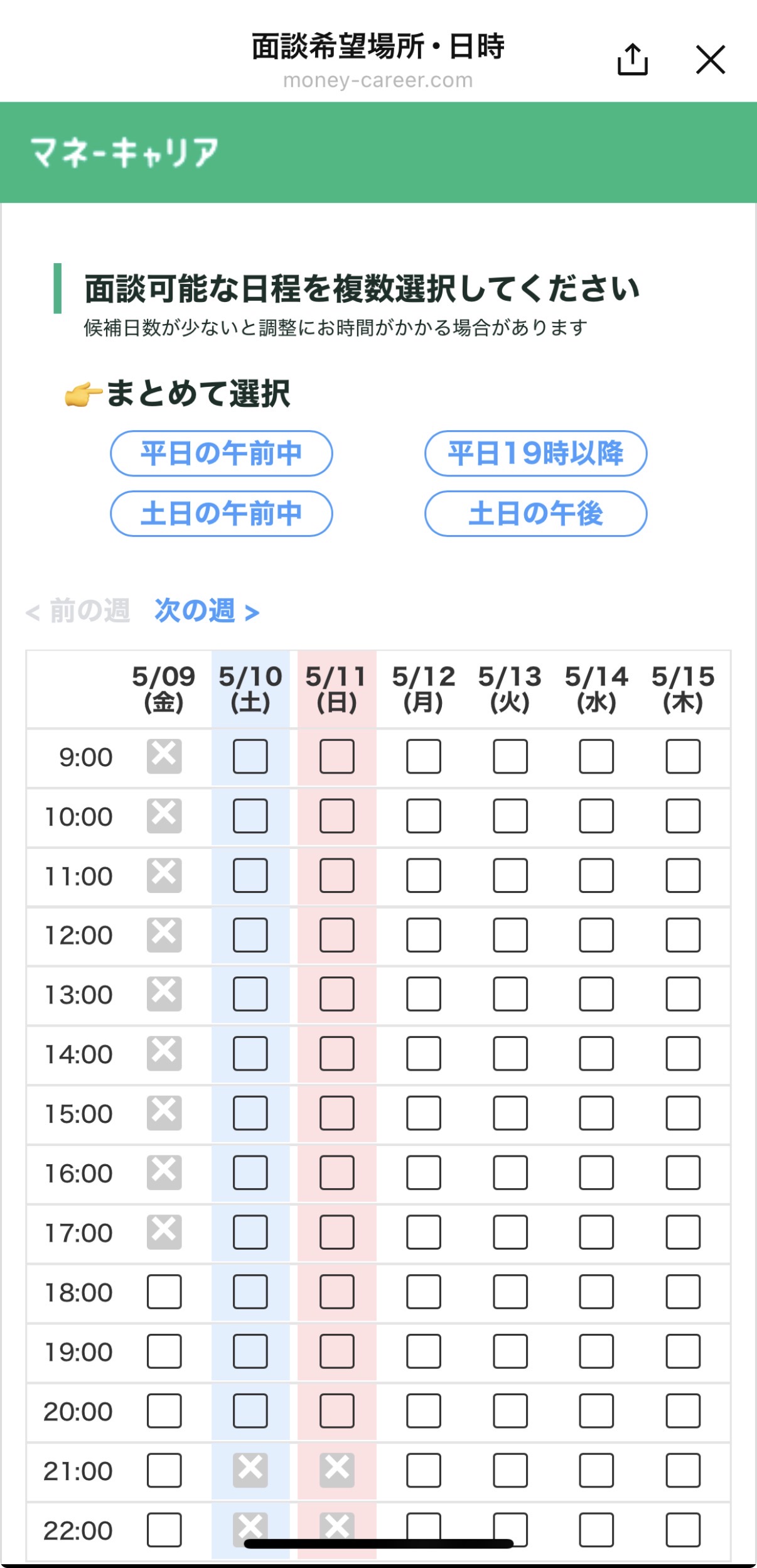 でも、マネーキャリアなら土日や夜でも予約をすることができるの!