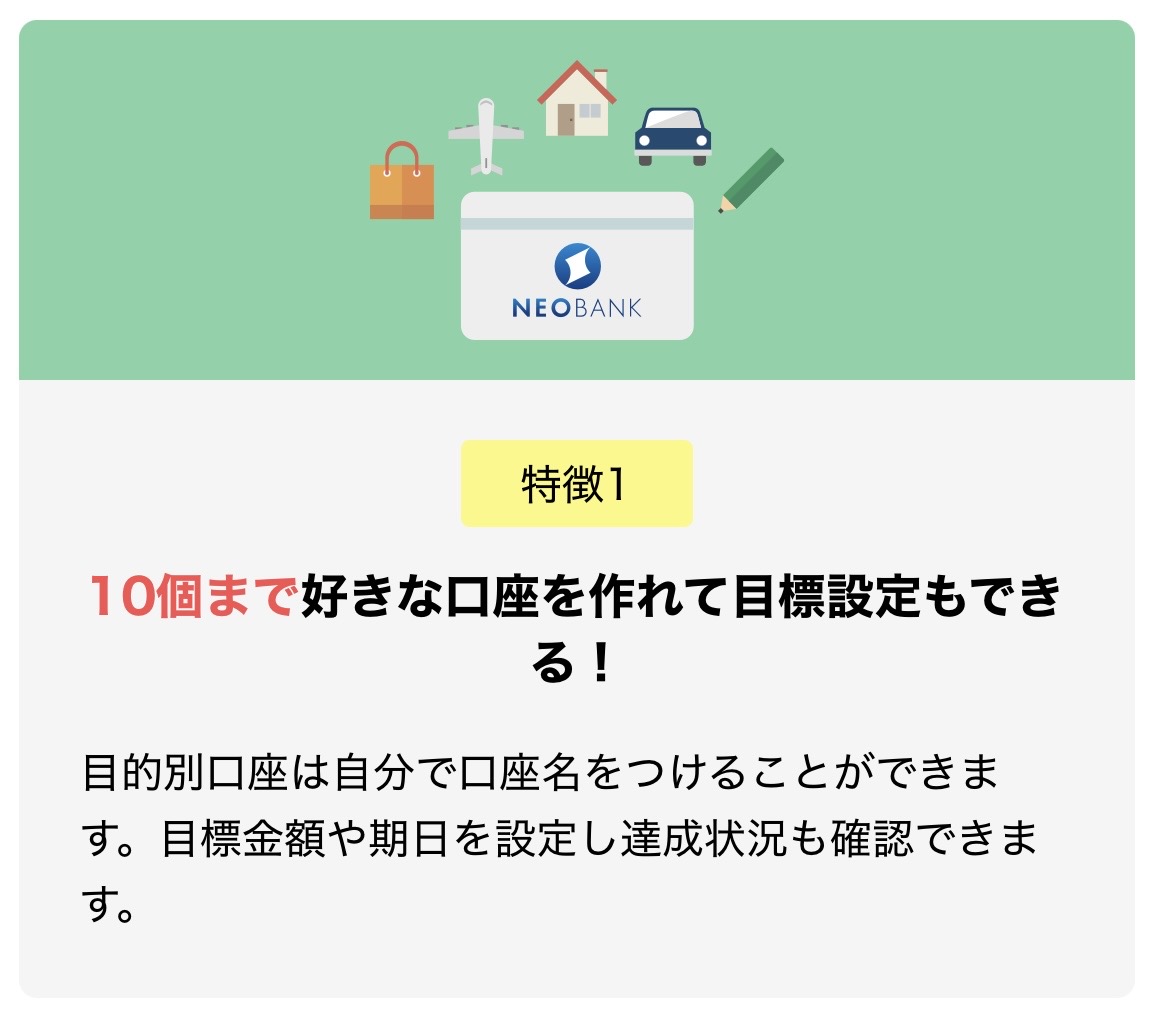・目的別口座を10個作成できる