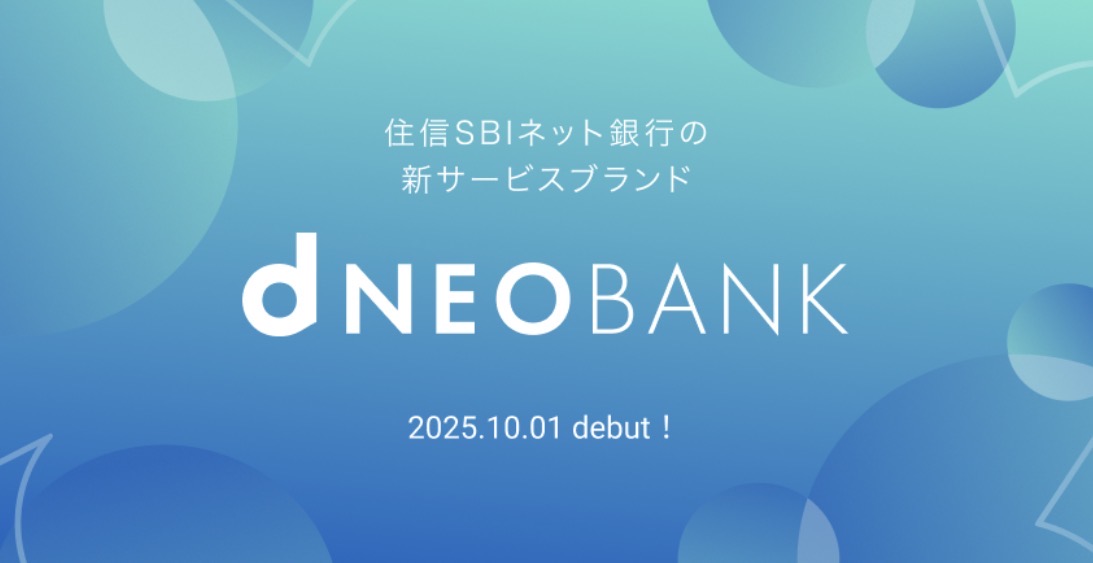 もともと住信SBIネット銀行という名前だったけど、2025年10月にNTTドコモの連結子会社になって「dNEOBANK住信SBIネット銀行」に改称したよ。今後は、2026年8月3日に、「株式会社ドコモSMTBネット銀行」に商号変更する予定。(ドコモと三井住友信託銀行が共同出資)