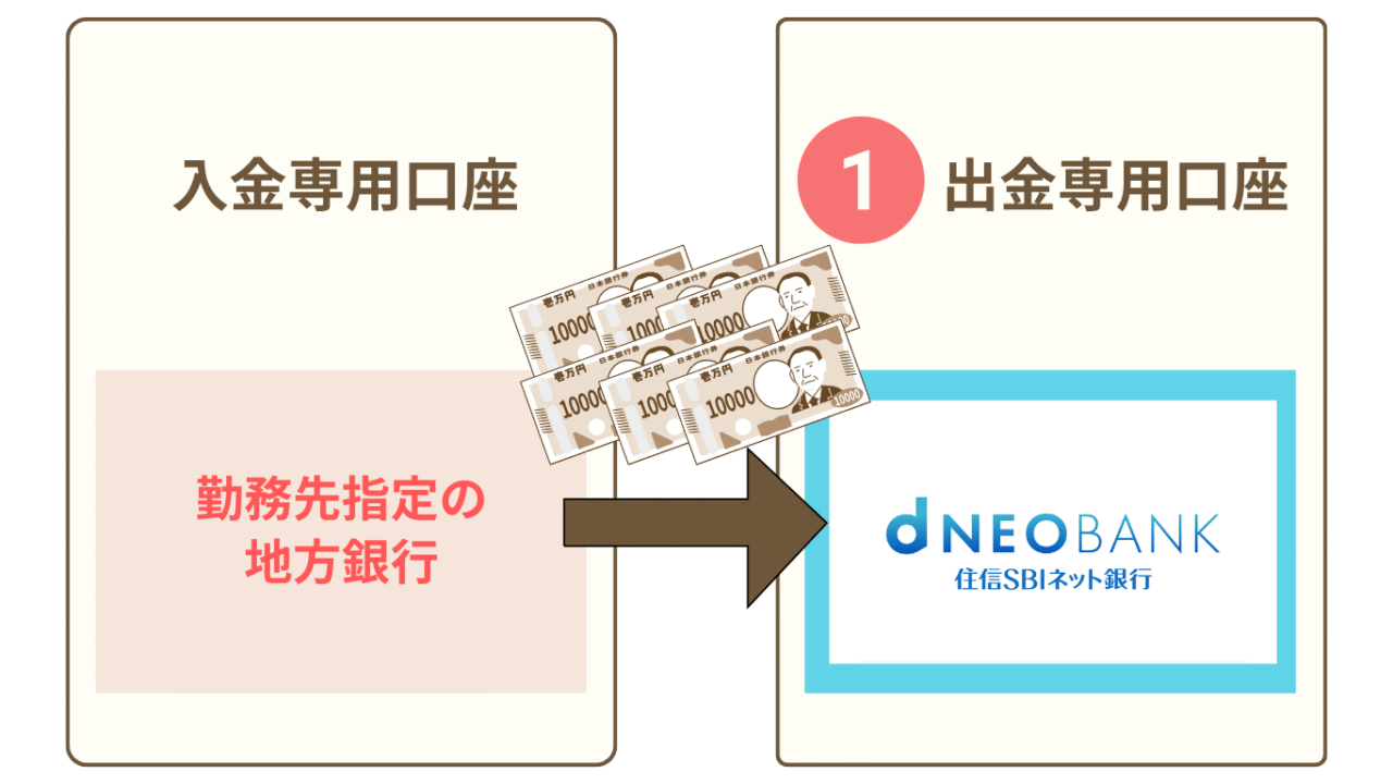 私は、自分の給料は、全額dNEOBANK住信SBIネット銀行に入金されるように設定してるよ!